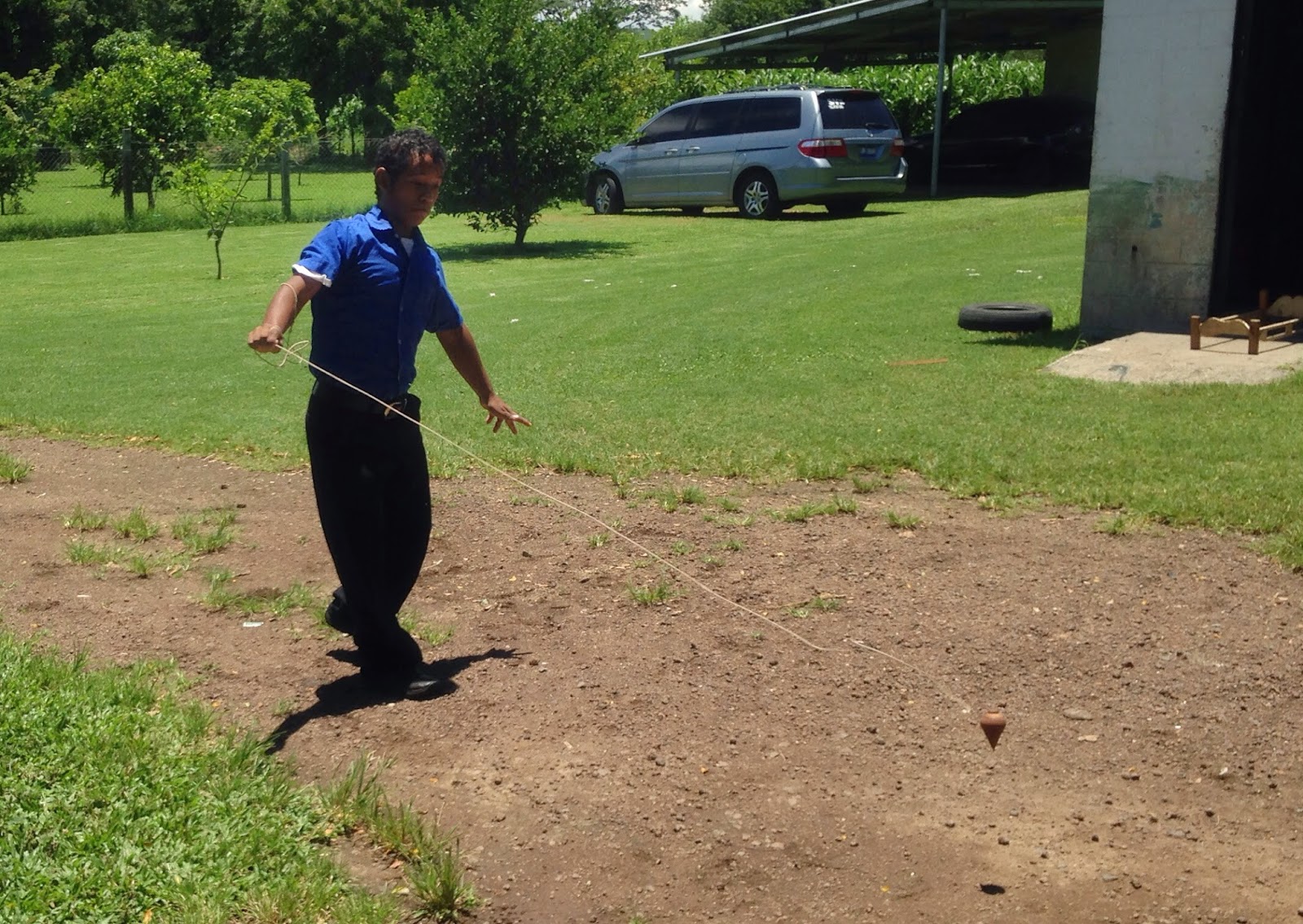The thing in the picture above is a trompo, a top that you wrap string around and then throw, as you can see Carlos doing. It's the time of year to have one--I think everyone in school has at least one, for sure among the boys. It's a little funny to us Americanos, but they have seasons for toys in El Salvador! A certain time of year everyone plays with marbles, which was just recently. Now it's the time for trompos. A little later on, when it gets windier, everyone will be playing with kites. It seems strange, but that's how it is!